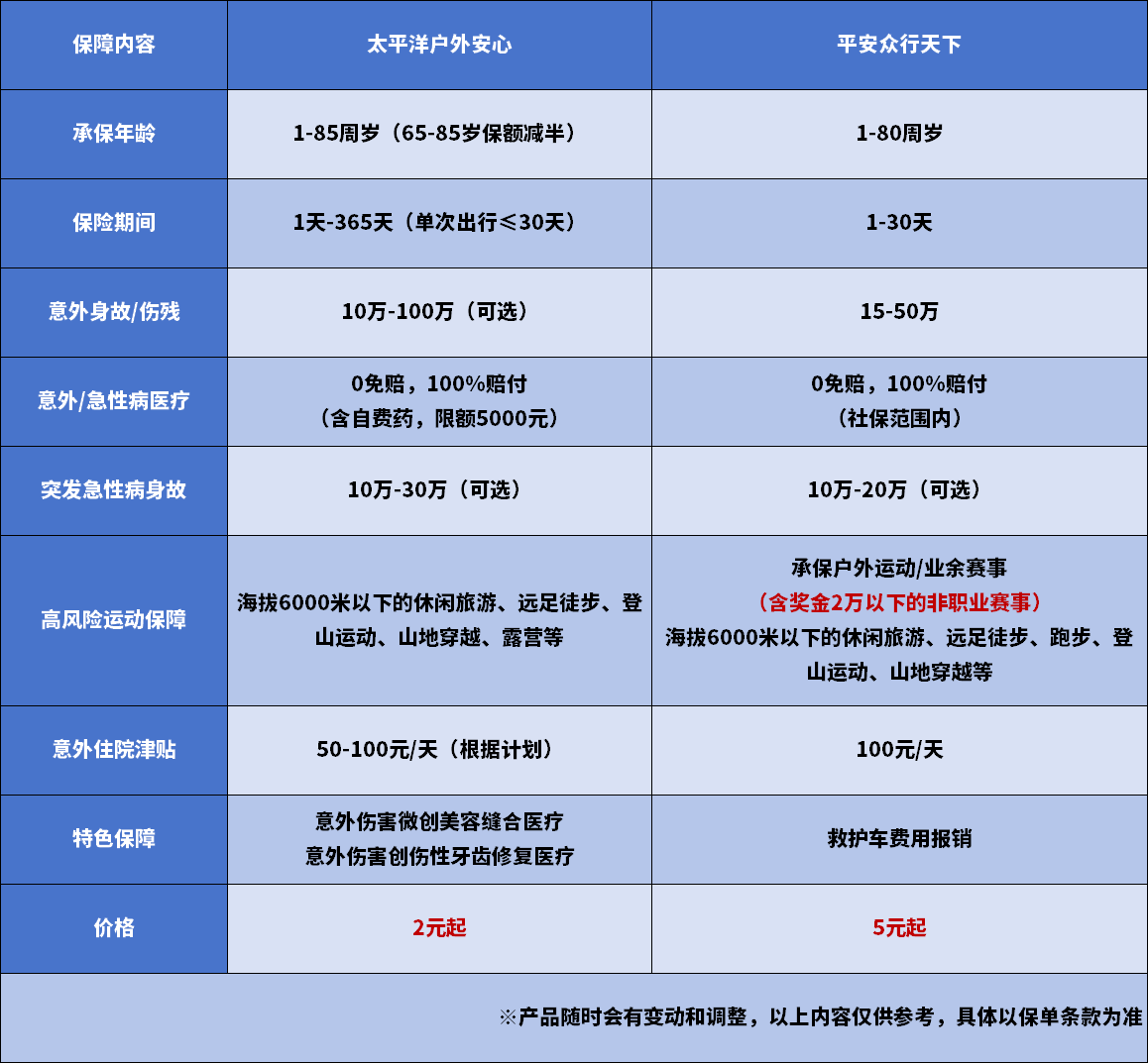 年长户外爱好者:最高承保85岁(65岁以上保额减半),比其他产品更友好