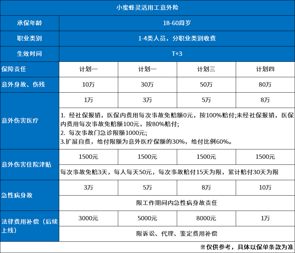 一款由人保推出的意外险产品,小蜜蜂灵活用工意外险在保障方面表现较为全面,具有以下特点: