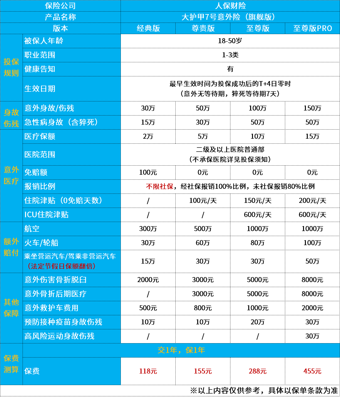 对比市面上多数意外险(通常有100元免赔、只报80%、限社保内),这款产品可以大大减少经济损失!