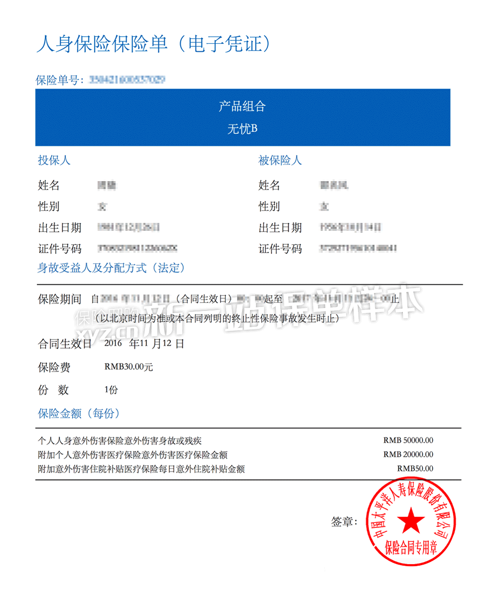 【信息披露】本保险为太平洋寿险保险股份有限公司产品(保险公司分支机构、产品备案编号),本保险后续理赔、保全等相关事务,可由新一站保险网(xyz.cn)协助办理。条款告知书