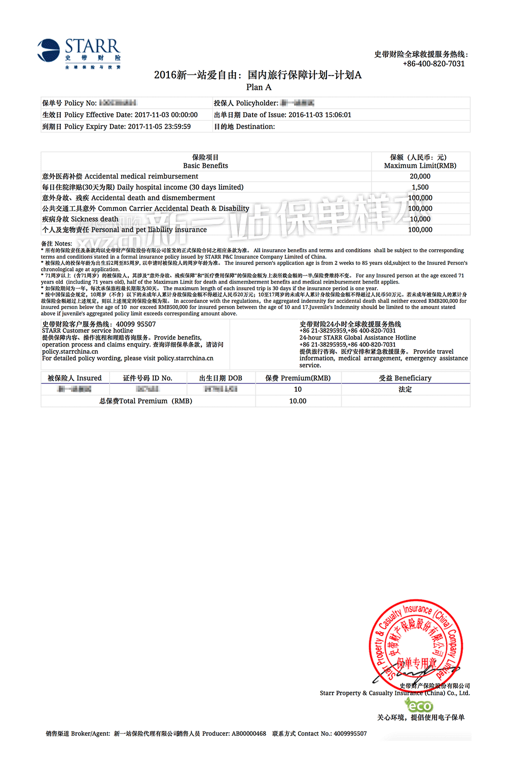 - 1、旅行人身意外伤害保险仅承保境内旅行批单-史带财险