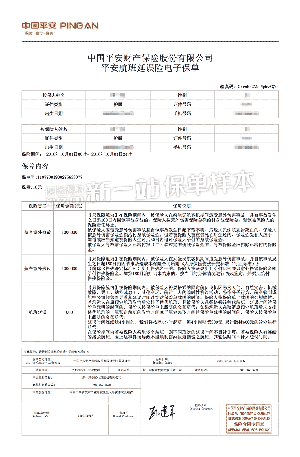 【保额说明】中国平安财产保险股份有限公司申明:本公司如承保同一被保险人的多份保险(不含团体保险),“航班延误”保障仅按最高保额给付保险金。