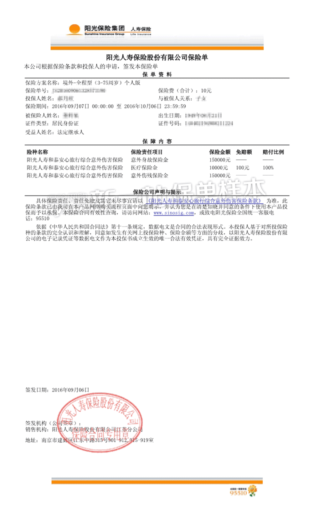 - 阳光人寿和泰安心旅行综合意外伤害保险条款-阳光人寿阳光人寿[2018]意外伤害保险071号