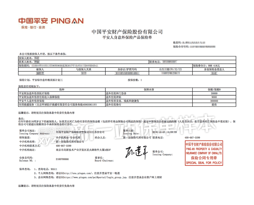 【信息披露】本保险产品由中国平安财产保险股份有限公司承保,面向全国(港、澳、台地区除外)销售(查询保险公司分支机构),销售主体为新一站保险代理股份有限公司;投保咨询、保单/凭证查询、客户投诉以及投保、承保、理赔、保全、退保等相关事务,由新一站保险网协助办理,新一站全国统一客服电话:400-667-5599。