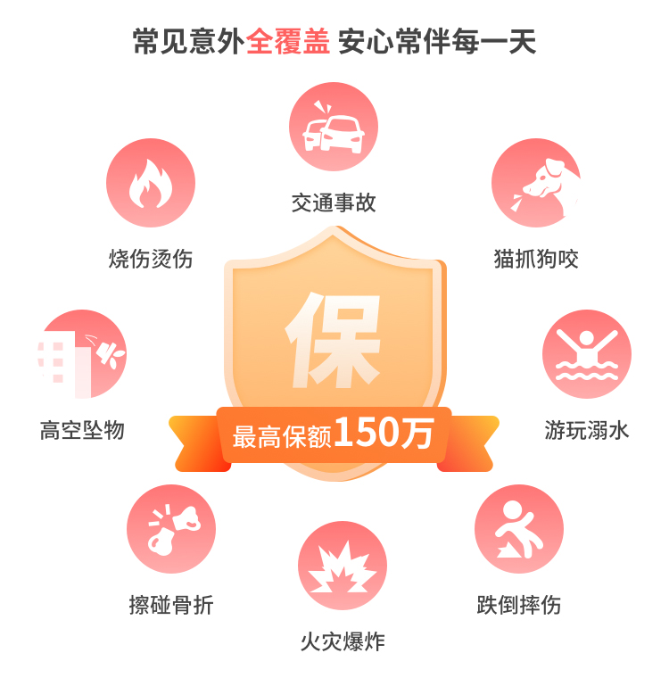 | 意外伤害骨折脱臼 | 2000元 | 保障被保险人在保险期间内,自获得被保资格之日起,遭受意外伤害,且自该意外伤害发生之日起90天内因该意外伤害被专科医生确诊为《骨折和脱臼保险金给付比例表》(详见条款)中各保障项目下所列完全性骨折(指由于意外事故单独且直接导致骨的完整性及连续性的破坏且相应骨的完全断裂,包括发生于椎体的压缩性骨折,但不包括骨的不完全断裂,如裂缝骨折、青枝骨折、颅盖骨线形骨折)或脱臼(指需要在麻醉状态下动手术把关节复位的关节脱位)的,按该保障项目所对应给付比例乘以保险金额给付骨折保险金或脱臼保险金,但给付各项保险金之和不超过保险金额。对手指和脚趾的给付,以每一个手指或脚趾计算。 |
