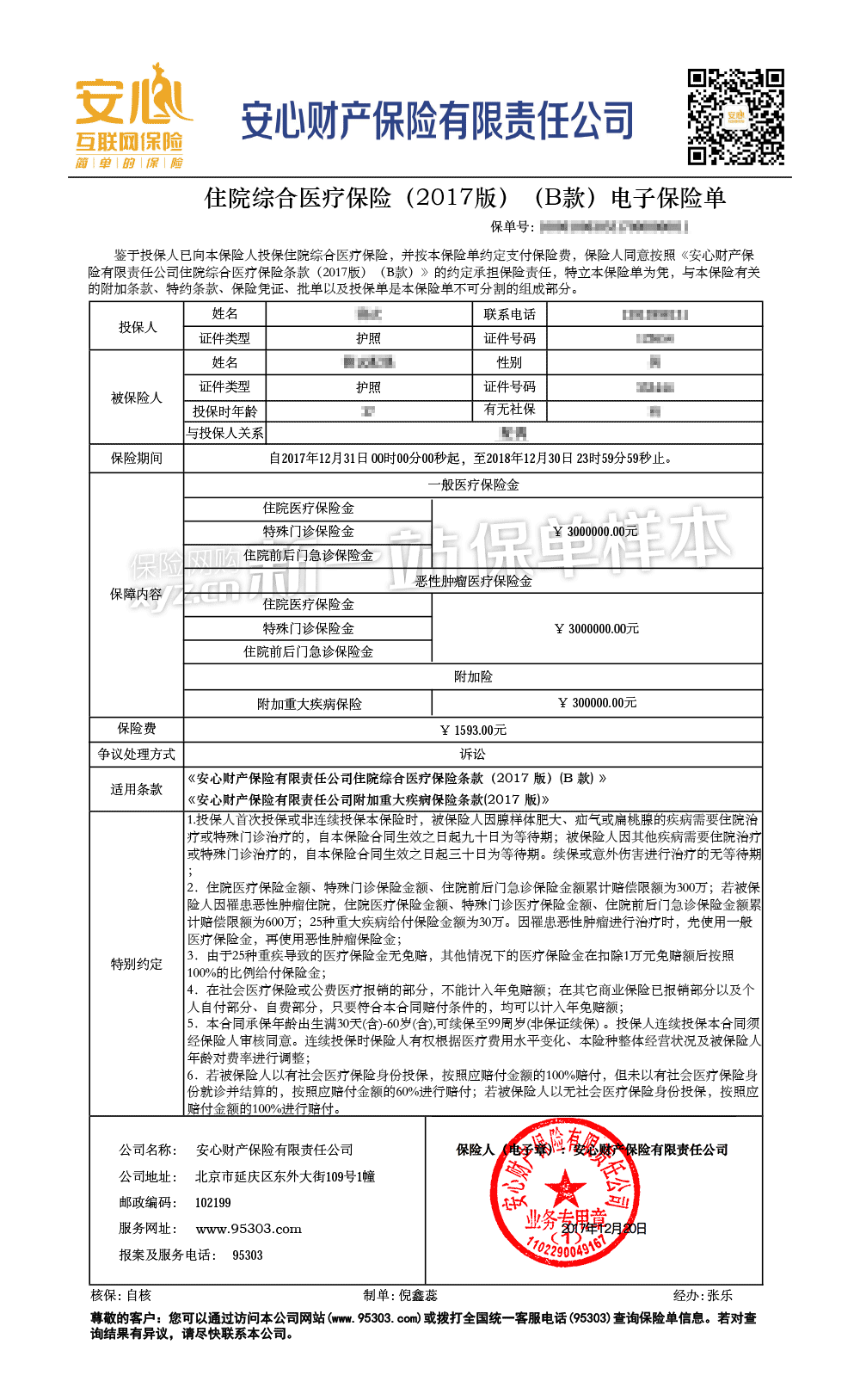 - 2、附加重大疾病保险条款(2017版)-安心保险注册号:C00020332622017101900982