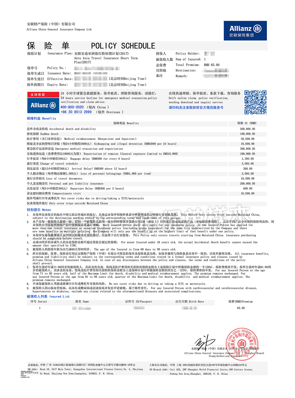 【紧急救援】如在旅行时遇紧急情况,须立即联系救援机构(24小时救援电话:+86-20-85132999)。