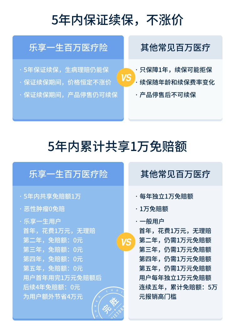 | 住院医疗 | 200万元 | 保障被保险人在保险期间内,如患疾病(等待期60日)或发生意外事故,因该疾病或事故住院医疗(含日间住院)产生的合理费用,按免赔额1万元(5年共享)、100%比例给付保险金: |