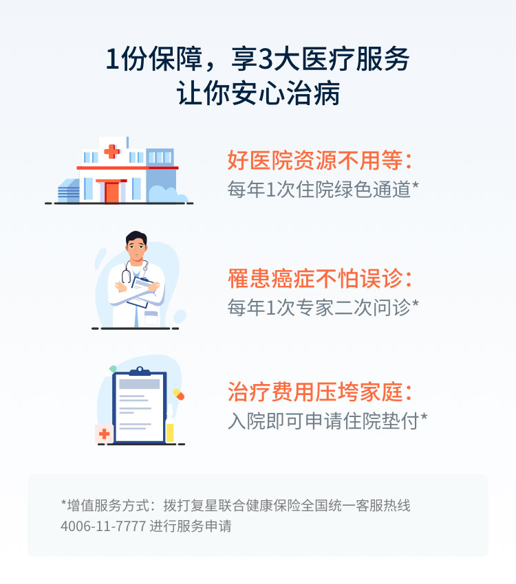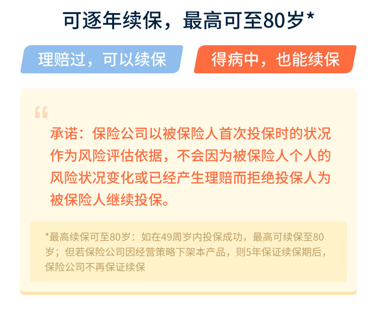 本产品不保证续保。如被保险人超过80周岁,或者本合同统一停售,复星联合健康保险不再接受投保人续保请求。