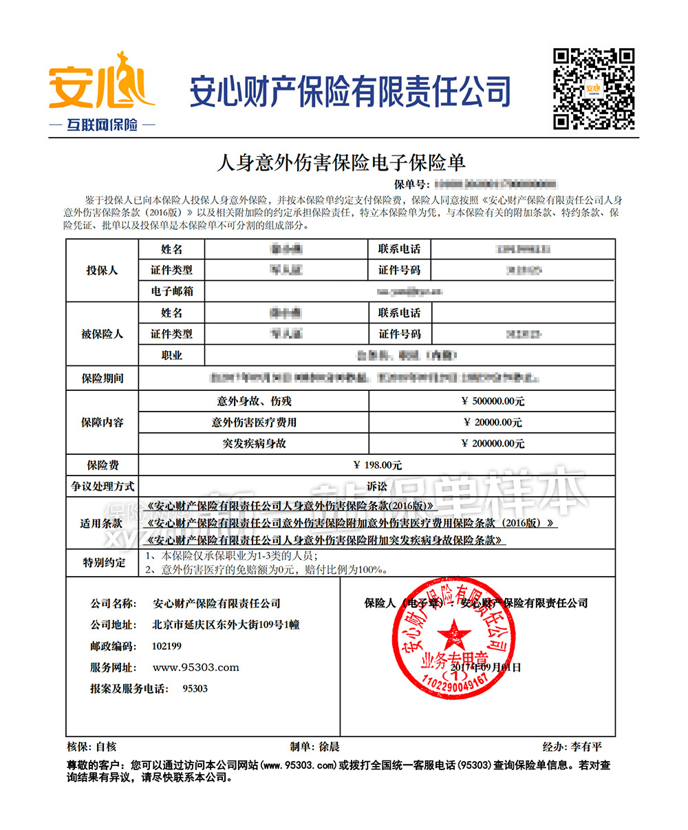 - 3、人身意外伤害保险附加突发疾病身故保险条款-安心保险(安心财险)(备-普通意外保险)【2016】(附)094号