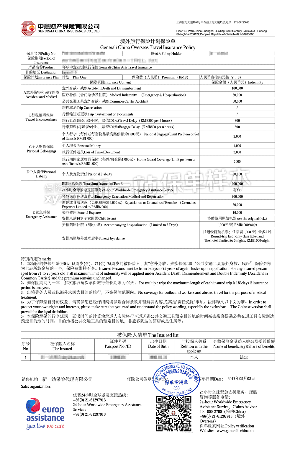 - 疾病医疗保障,24小时紧急救援,随身行李设备,航班延误