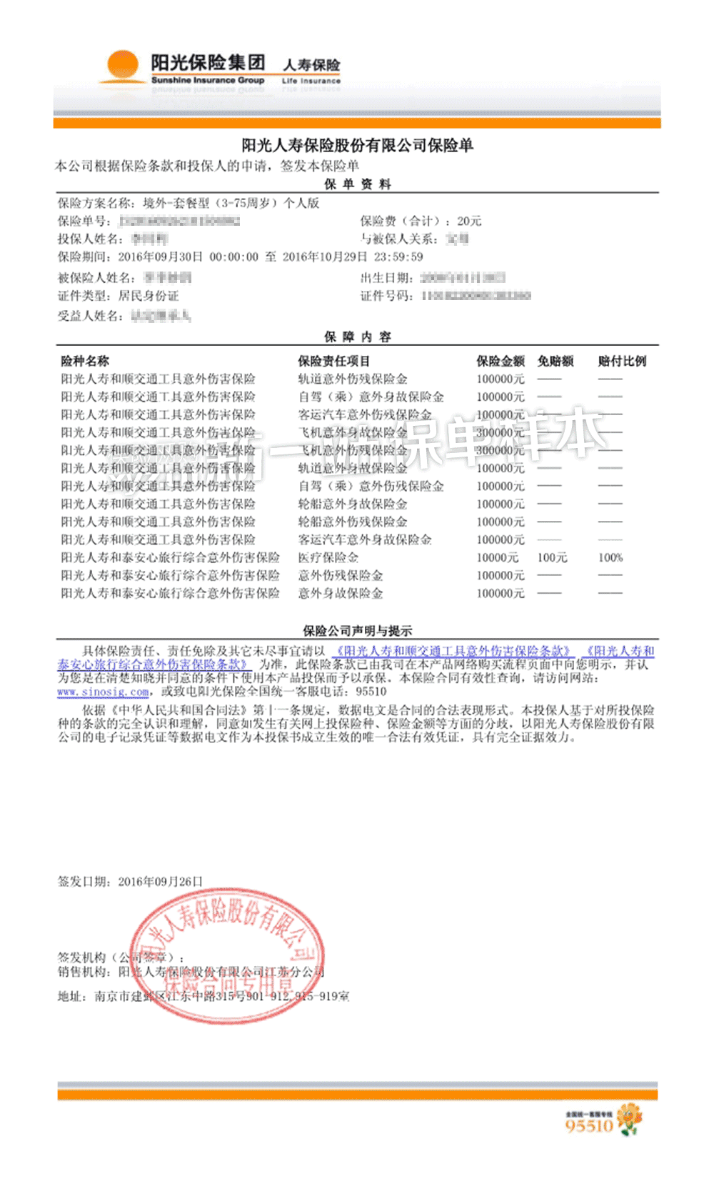 - 2、阳光人寿和泰安心旅行综合意外伤害保险条款-阳光人寿阳光人寿[2018]意外伤害保险071号