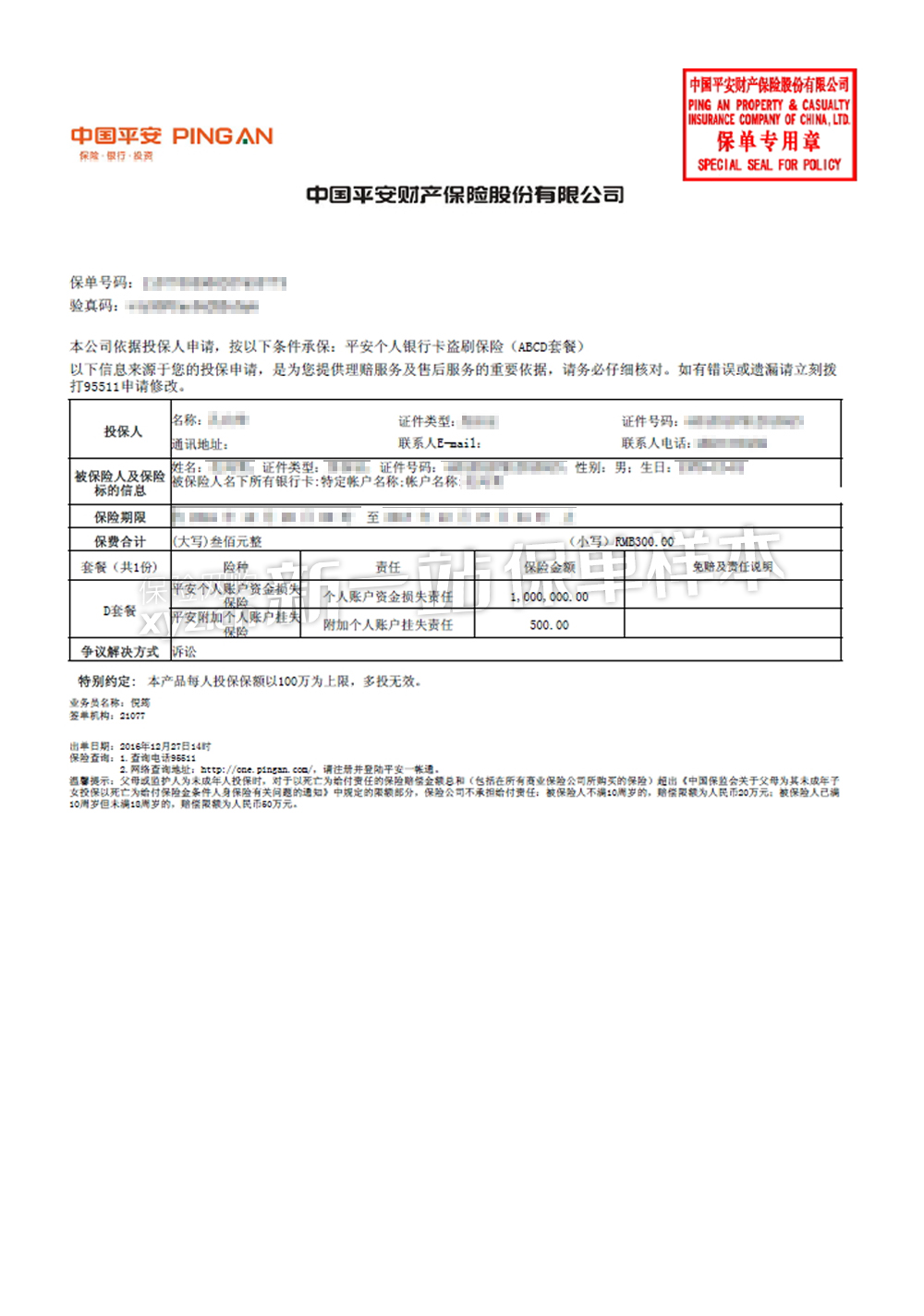 - 保单/凭证样本