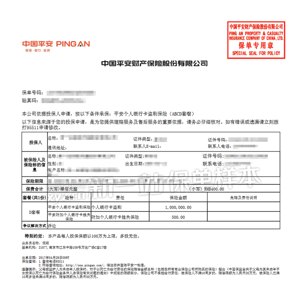 - 平安个人银行卡盗刷保险条款
