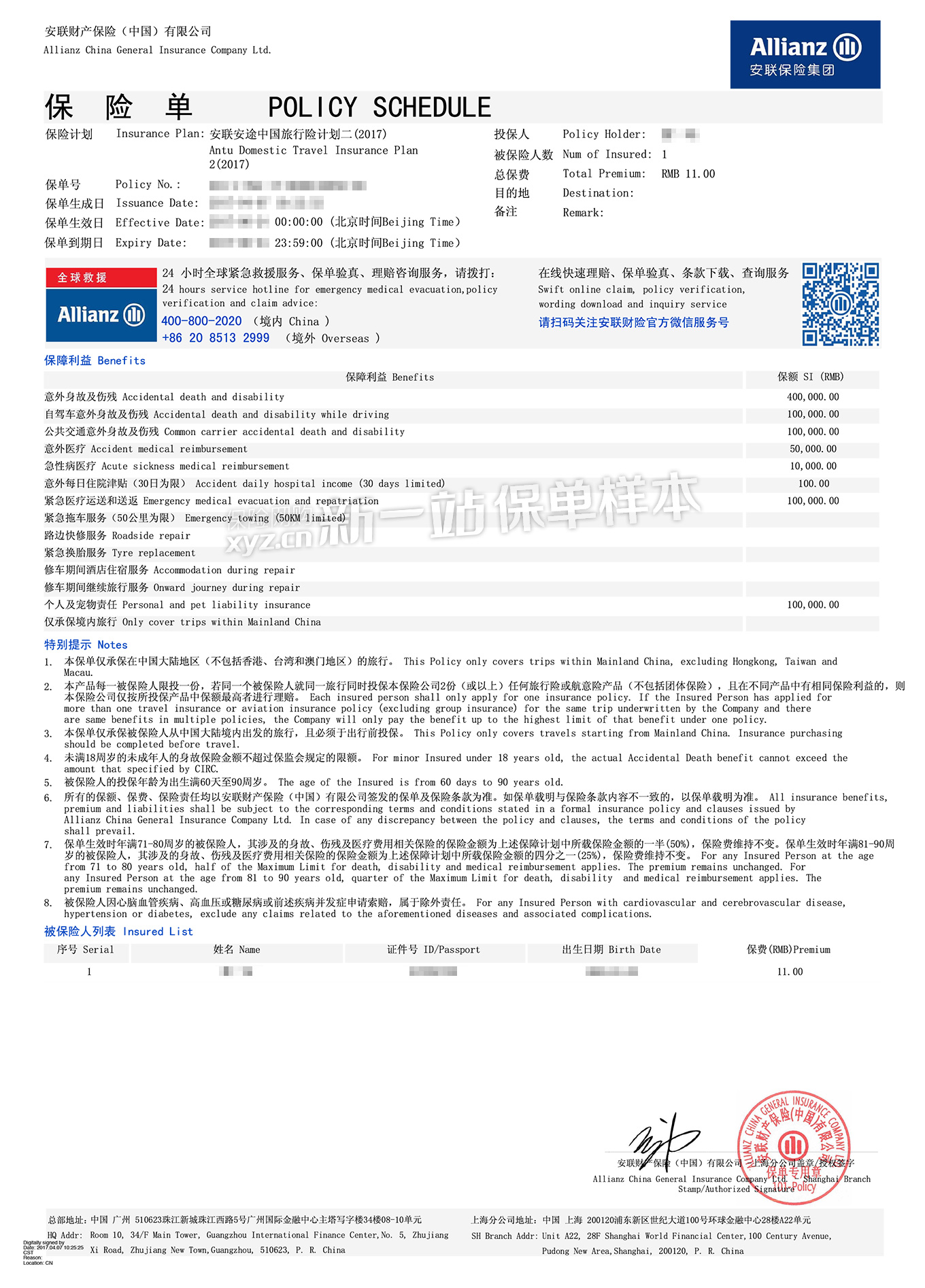 【保障区域】中国境内(不含港澳台地区);不承保本市出行。