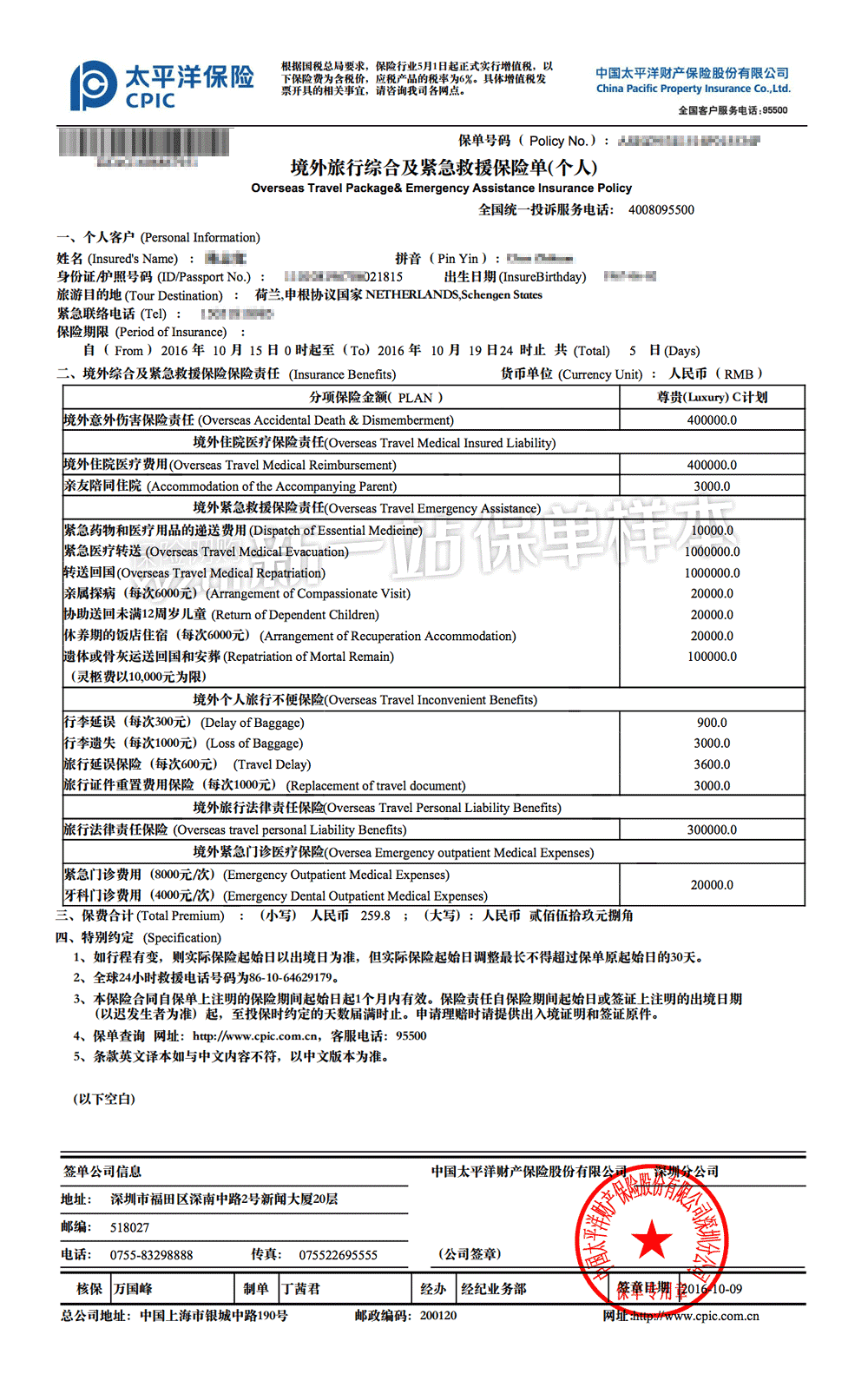 - 保障全面,牙科门诊医疗,满足申根签证要求