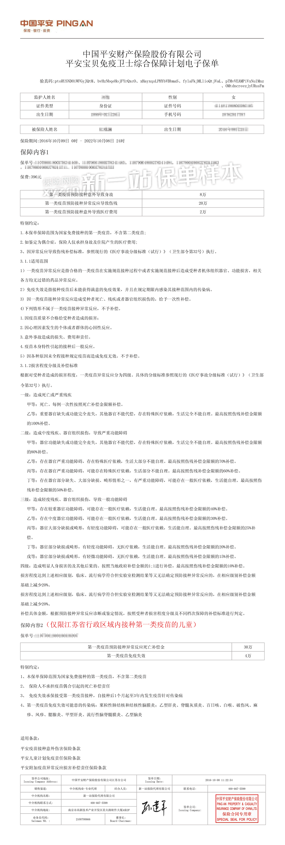 - 3、平安附加被监护人疫苗意外伤害保险(A款)条款-中国平安注册号:C00001730922018111906652