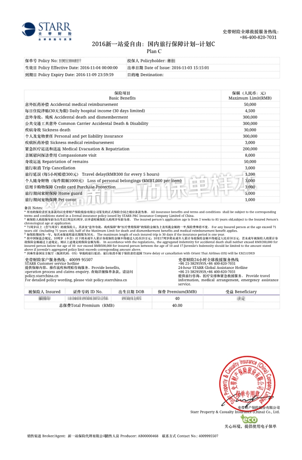 【保额说明】史带财产保险股份有限公司申明:本公司如承保同一被保险人的多份保险(不含团体保险),“意外伤害”同类保障仅按最高保额给付保险金,并退还其他保险该保障下的已收取的保险费。