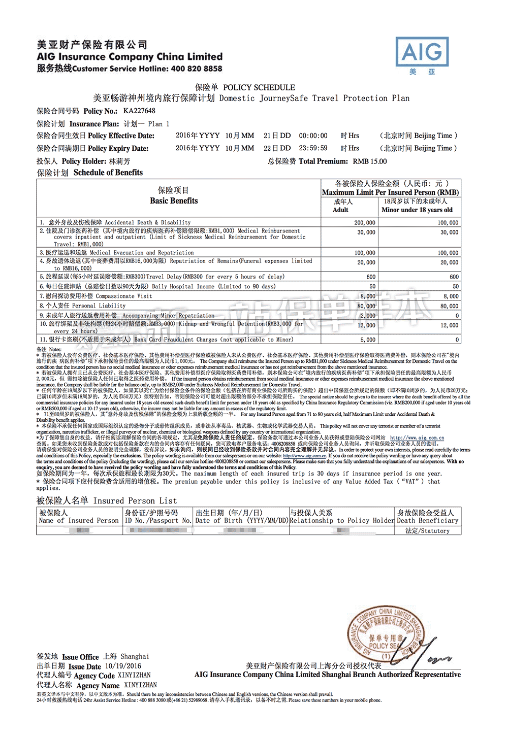 - 10、旅行意外伤害保险仅承保境内旅行批单-美亚财险