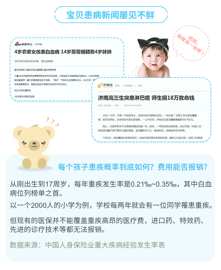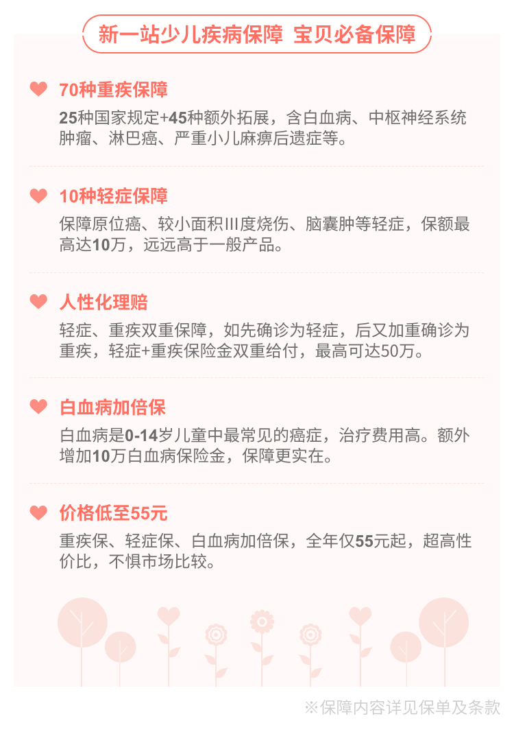 | 少儿白血病保险金 | 10万元 | 保障被保险人在保险期间内(等待期90日),如经专科医生确诊首次患本保险约定的少儿白血病,给付保险金: |