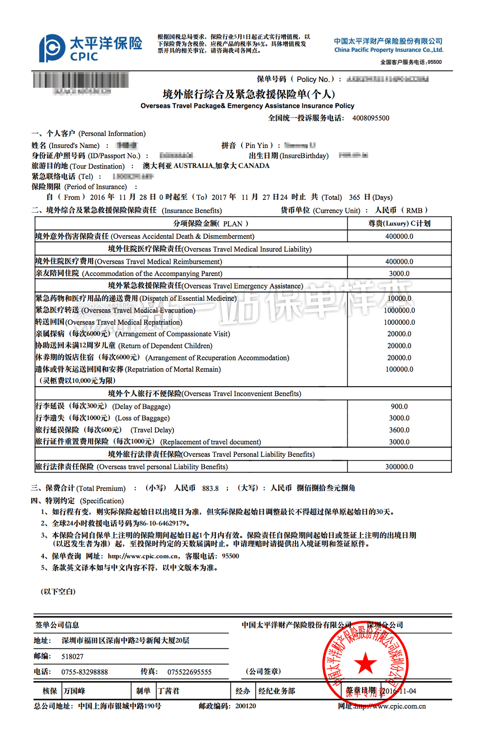 - 保单/凭证样本