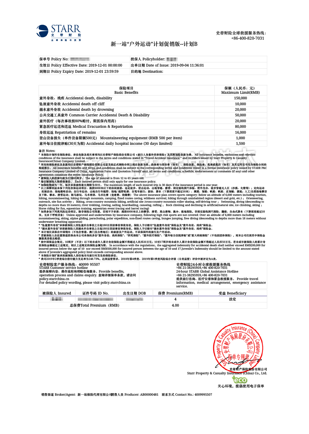(3)每件登山设备损失保险金不超过500元。