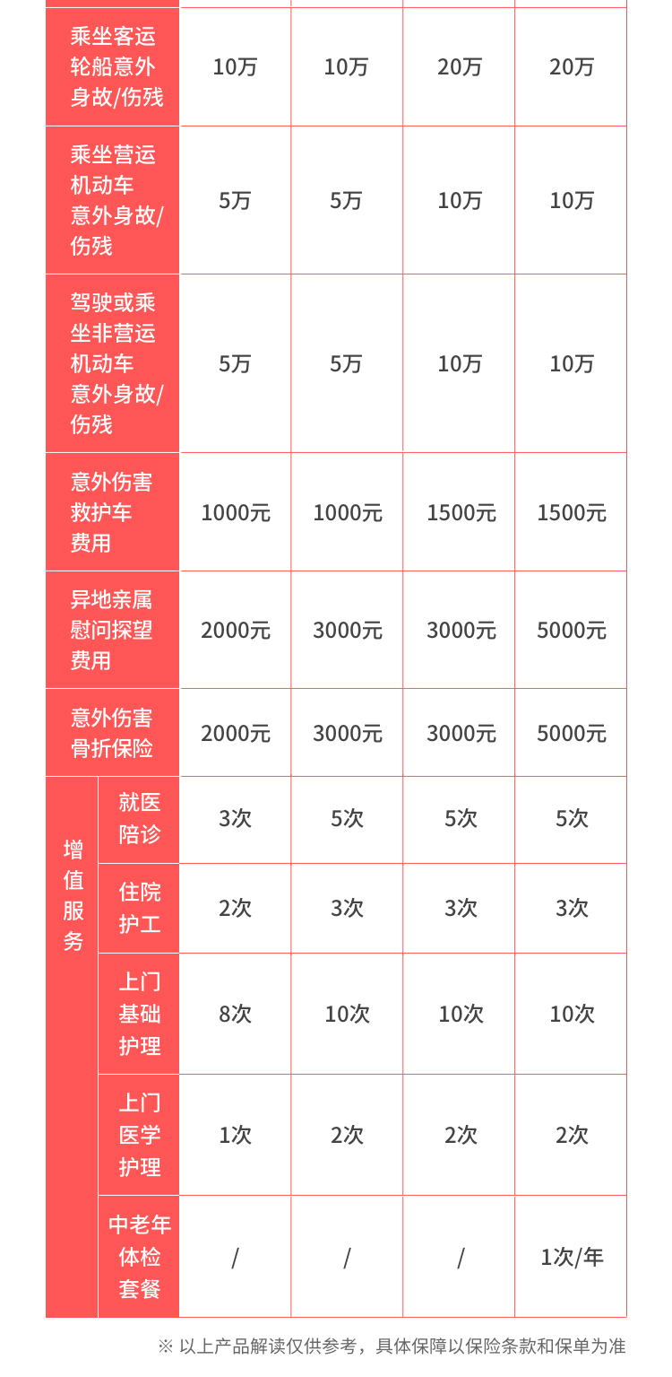 20. 本产品包含如下增值服务:就医陪诊、住院护工、上门基础护理、上门医学护理,详情可查看《增值服务手册》。