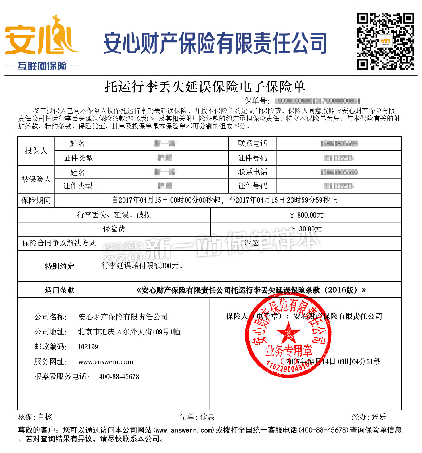 - 托运行李丢失延误保险条款(2016版)-安心保险