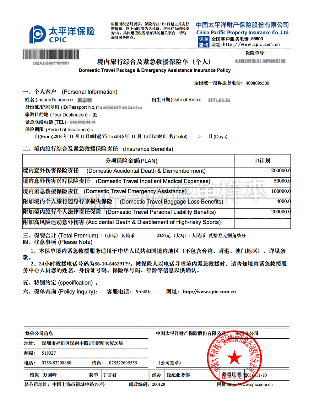 【信息披露】本保险产品由中国太平洋财产保险股份有限公司承保,面向全国(港、澳、台地区除外)销售(查询保险公司分支机构),销售主体为新一站保险代理股份有限公司;投保咨询、保单/凭证查询、客户投诉以及投保、承保、理赔、保全、退保等相关事务,由新一站保险网协助办理,新一站全国统一客服电话:400-667-5599。