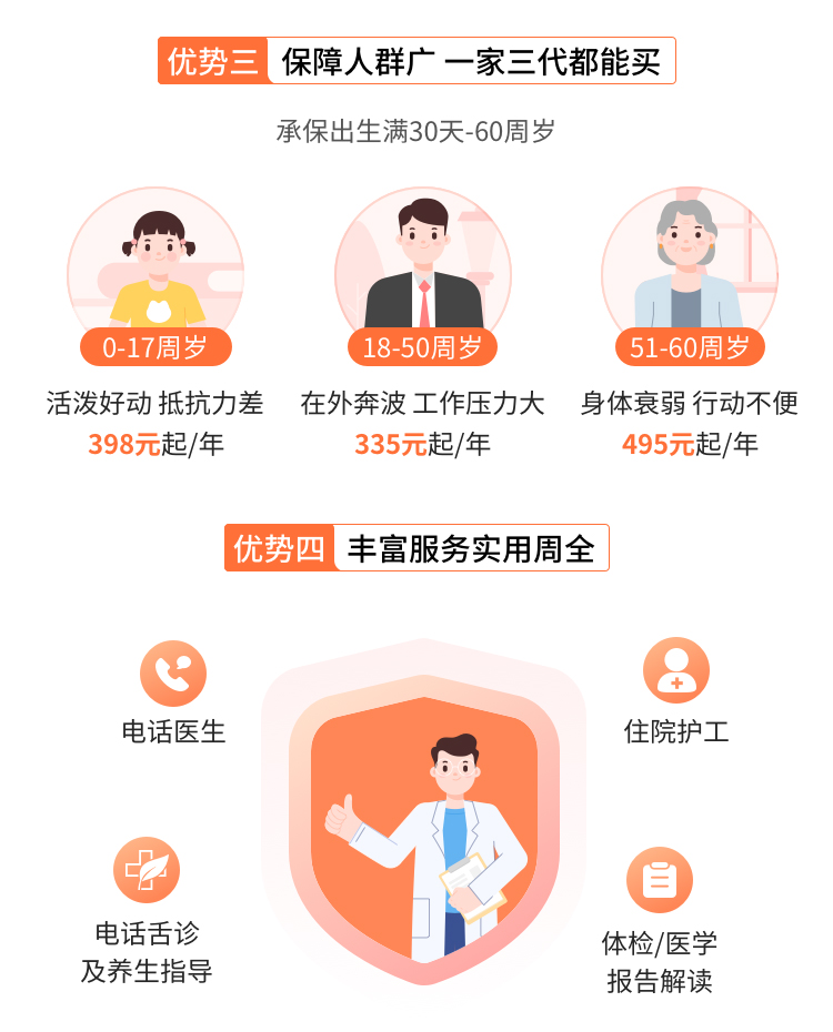 14. 本产品提供住院专属护工、电话医生、中医舌诊及养生指导(家庭版)、医学检查/体检报告解读(家庭版)四项增值服务,具体使用流程请参考《服务手册》。