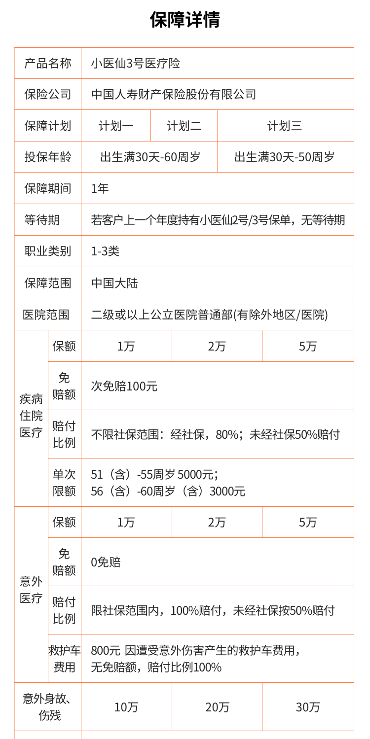 2. 计划一和计划二承保年龄范围为30天-60周岁,计划三承保年龄范围为30天-50周岁(含)。