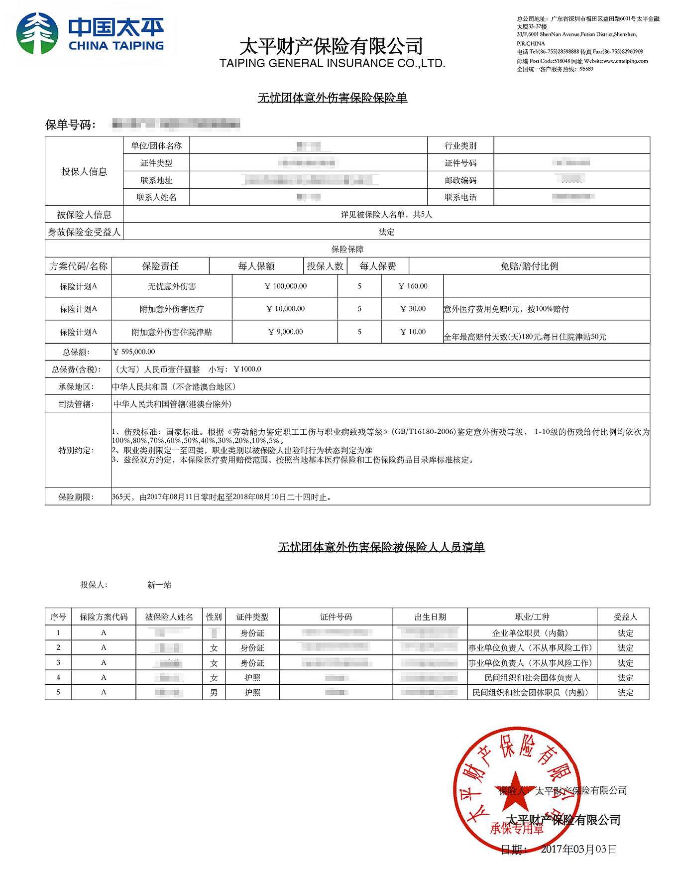 【信息披露】本保险由太平财产保险有限公司承保( 保单样本、保险公司分支机构、产品备案编号 ),后续保全、理赔等相关事务,可由新一站保险网(xyz.cn)协助办理。
