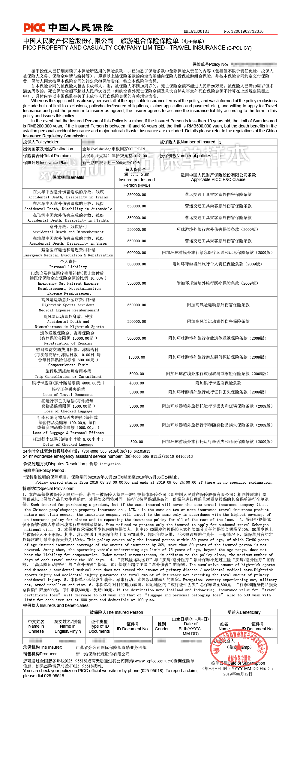 - 保单/凭证样本
