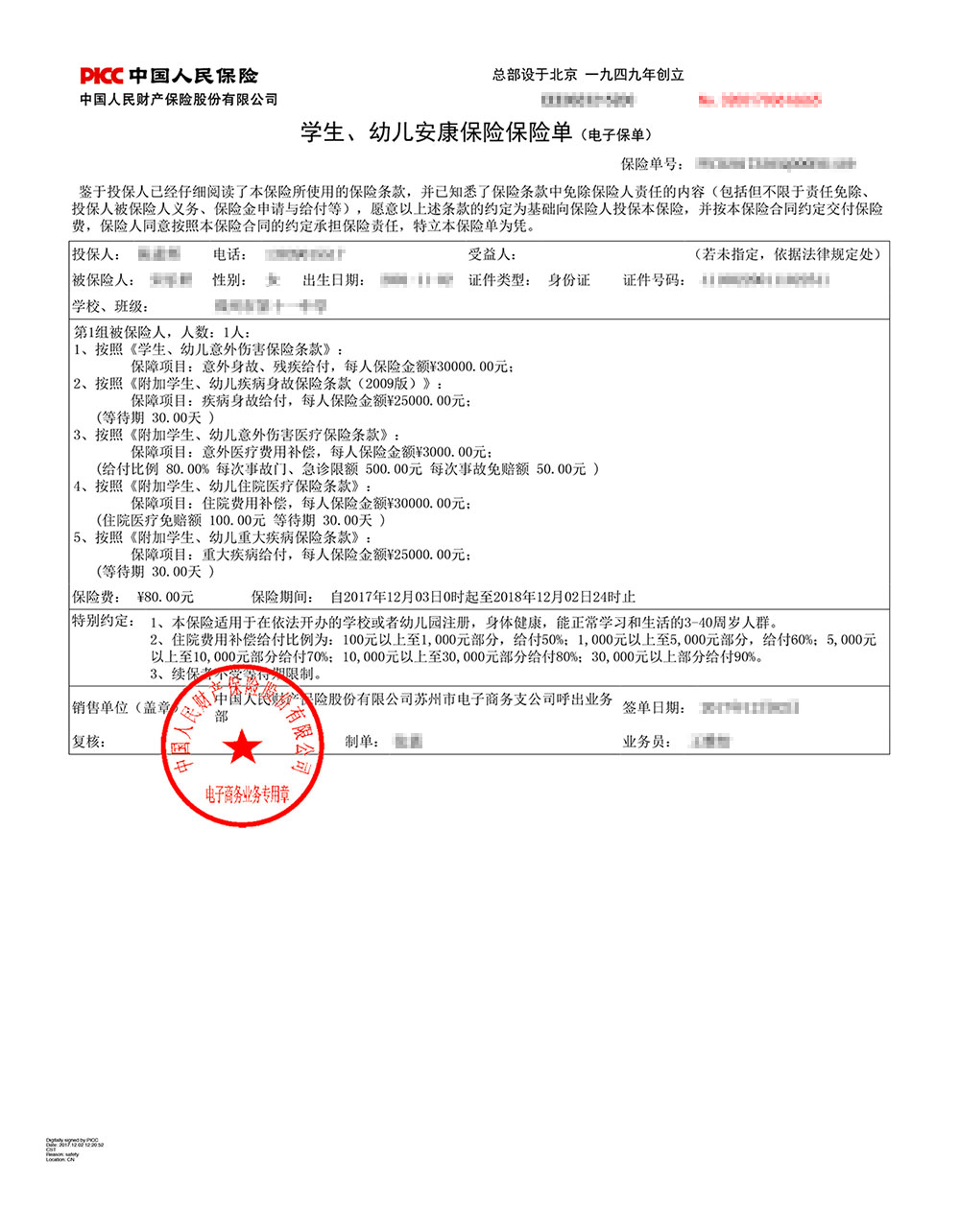 - 2、附加学生、幼儿重大疾病保险条款-人保财险人保财险(备-健康)【2015】附63号