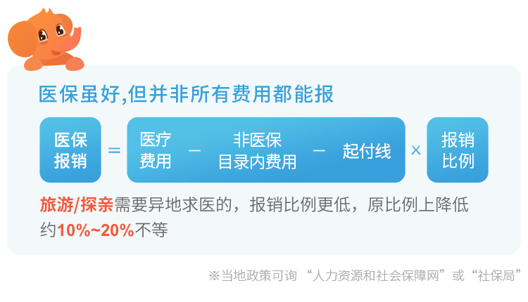 | 疾病住院医疗 | 1万元 | 保障被保险人在保险期间内(等待期90日),如首次发病经诊断罹患疾病须住院治疗,因该疾病治疗产生的合理住院医疗费用,每次事故按免赔额0元,80%比例给付保险金: (5)合理住院医疗费用支出超过1万元部分,按照“一般医疗保险金”约定免赔额、比例给付保险金; (6)以参加社会医疗保险身份投保,但未以社会医疗保险身份就诊并结算: |
