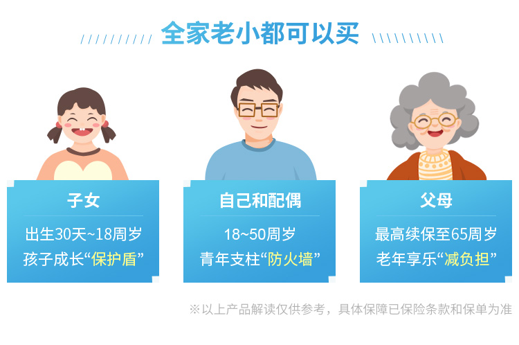 | 一般医疗保险金 | 100万元 | 保障被保险人在保险期间内(等待期90日),如发生意外事故或等待期后因初次出现症状或体征且确诊罹患疾病,因该事故或疾病治疗产生的合理住院医疗费用或6种重大疾病特殊门诊医疗费用(详见“投保须知”),给付保险金: (7)如保险到期后仍需住院治疗,给付保险金期限自动延长,最长不超过30日。 |