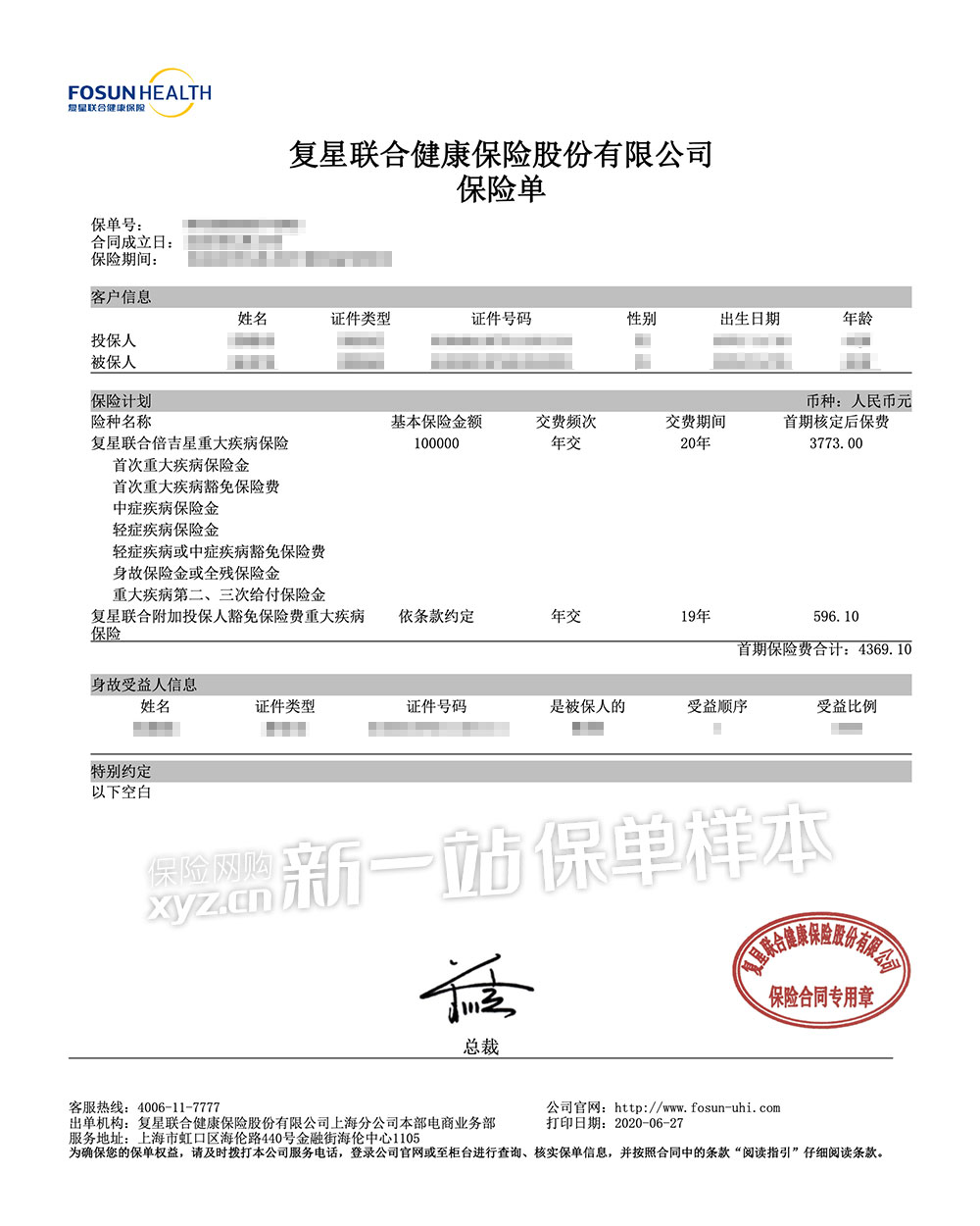 新一站-复星联合倍吉星重大疾病保险(预约)